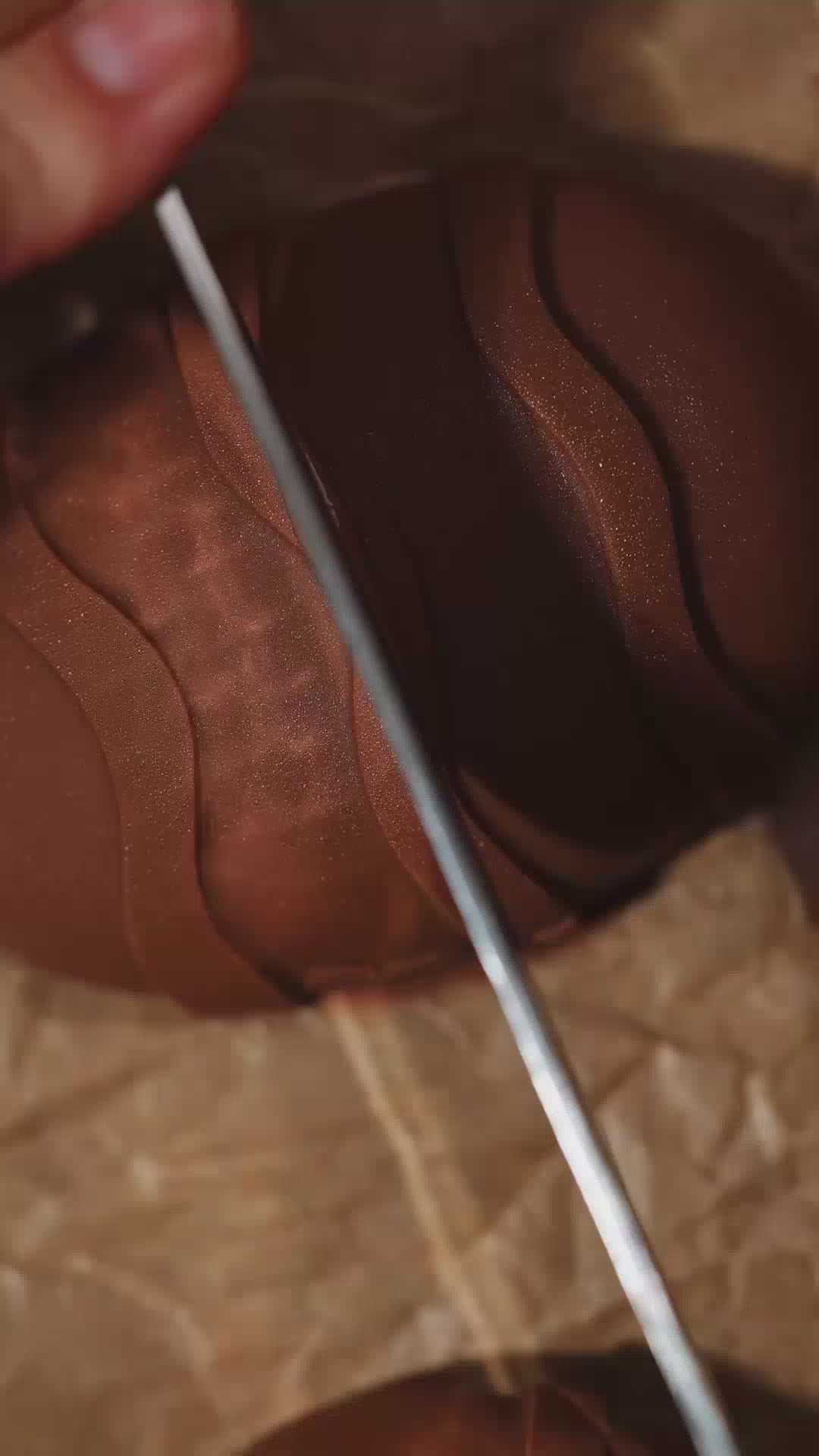 Remove the mold and check for any thin spots. Add extra melted chocolate where needed, then turn the mold upside down on the lined tray so excess chocolate can drip out and create an even shell.